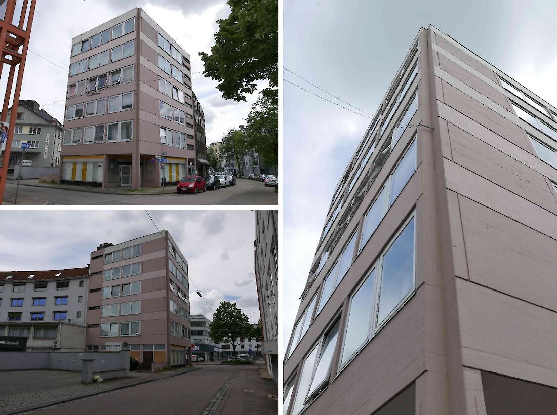 Ein Hochhaus im Bonsaiformat. So jedenfalls wirkt das sechsgeschossige Eckgebäude an der Einmündung der Mühlen- in die Sulzbachstraße. Es zeichnet sich durch eine zeittypische strukturierte Betonfassade aus: ein feines Fugennetz unterscheidet tragende von ausfachenden Elementen, zusätzlich belebt durch original erhaltene Schwingfenster. Zusammen mit der Hochgarage vis-a-vis (siehe Ausgabe 04/16) bildet das über 60 Jahre alte, nahezu unveränderte Gebäude ein markantes Ensemble im Mühlenviertel. Dieses entand im Zuge einer städtebaulichen Neuordnung, als nach dem kriegsbedingten Niedergang des Volksparkes der Sulzbach unterirdisch neu geführt wurde. Der 1923 geborene und noch lebende Architekt Günther Mönke entwarf dieses klar gegliederte Geschäftshaus für die Firma BEA (Baugesellschaft für elektrische Anlagen). Neben seiner langjährigen Lehrtätigkeit, die er von 1948 bis 2000 ausübte, zunächst als Dozent und schließlich als Professor an der HTW, hat Günther Mönke im Zeitraum von 1952 bis 1995 sowohl als freischaffender Architekt, als auch in wechselnden Büropartnerschaften, vornehmlich mit Hubertus Wandel, im Saarland ein breites architektonisches Œuvre hinterlassen.