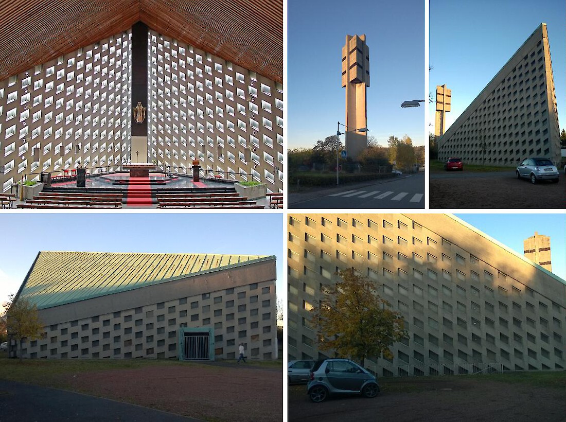 Kirchengebäude der katholischen Gemeinde, Ecke Fenner Str. / Hausenstr., Völklingen, erbaut 1962-65; Architekt Dr. Konny Schmitz