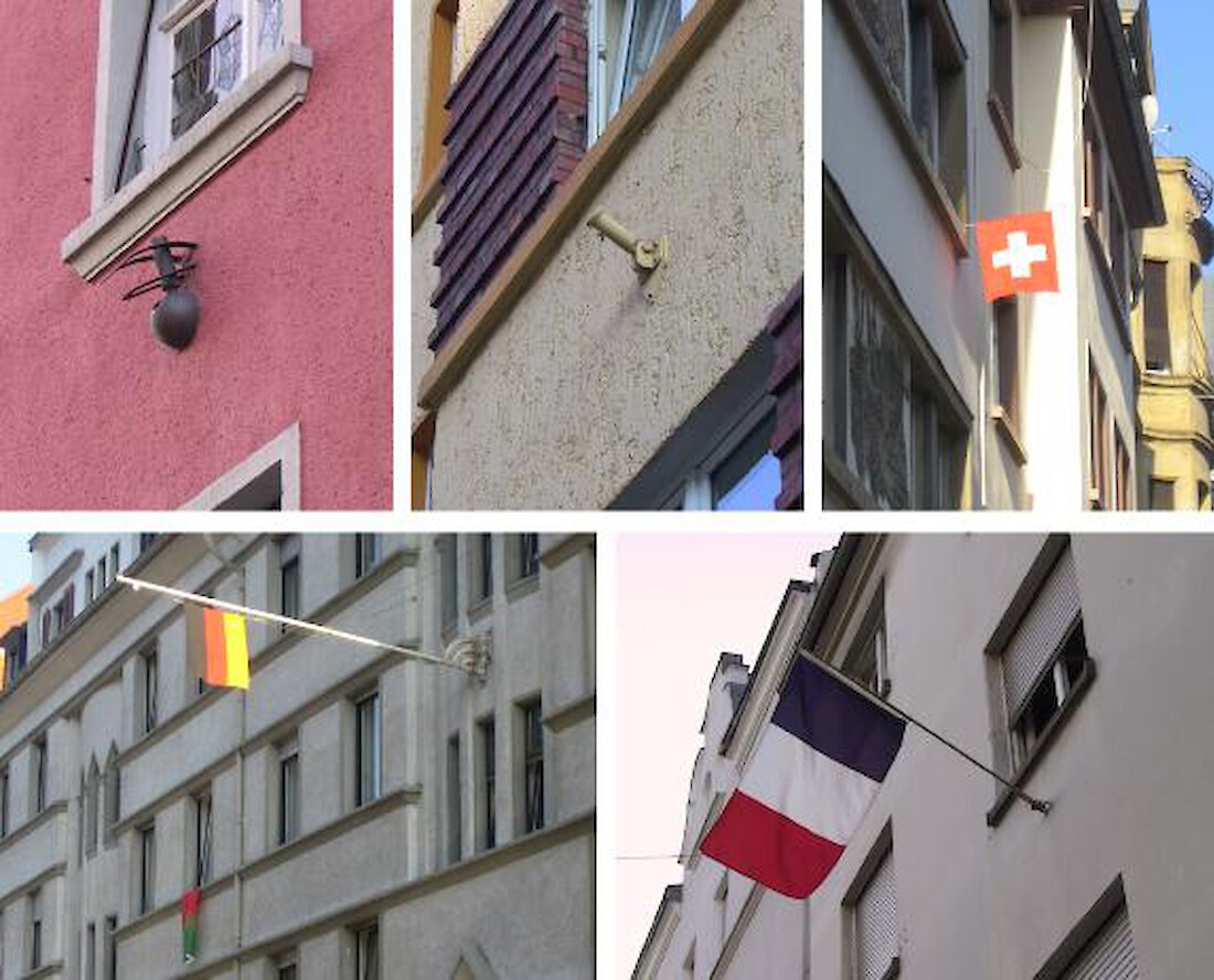 Die Fussballweltmeisterschaft 2006 hat Deutschland bunter gemacht. Auch die Hausfassaden mit Hilfe vieler Länderflaggen. Die Beflaggung zu besonderen Anlässen an nicht öffentlichen Bauten hat eine lange Tradition. Während des Nationalsozialsimus´ wurde diese Art der „Beschmückung” des öffentlichen Raums politisch missbraucht. Aus diesem Grund sind die Fahnenhalter, vor allem an den Bauten der Gründerzeit und der zwanziger Jahre in Vergessenheit geraten. Jetzt sind vieler dieser Fahnenhalter an den Fassaden, einfache Rohrhülsen bis kunstvoll geschmiedete Objekte, wiederentdeckt worden und neben Schwarz-Rot-Gold hängen die Trikolore, das schweizer Kreuz und andere Flaggen. Das nächste Fussballereignis, die EM 2008 wird bestimmt wieder für Fahnenschmuck an den Häusern sorgen. Vielleicht lässt sich diese Art der Bekundung auf Kulturfeierlichkeiten übertragen, beispielsweise auf die Feiern der Kulturhauptstadt Europas in der Grossregion 2007 oder das 100jährige Grossstadtjubiläum Saarbrückens 2009.