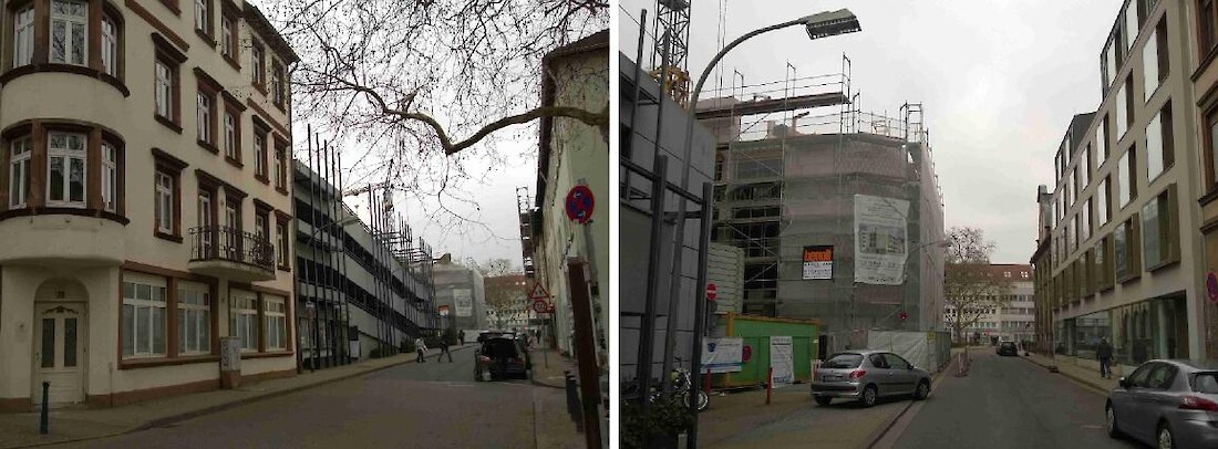 Das Karree Bleich-/Gerber-/Kaltenbach-/Großherzog-Friedrich-Straße östlich des Rathauses fristet städtebaulich ein stiefmütterliches Dasein, obwohl es mitten in der Stadt liegt und hoch attraktiv erscheint. Dieses zentrale Areal ist durch eine Unmenge Autoblech geprägt, welches ebenerdig auf historischem Pflaster des Gerberplatzes unter imposanten Platanen und in den vielen Baulücken zwischen dem kümmerlichen Baubestand parkt. Die meisten Autos aber stapeln sich in den drei Parkdecks der Hochgarage an der Kaltenbach- und Gerberstraße, das über die Hälfte des Baublocks einnimmt und somit eine hochwertigere Entwicklung des Rathausumfeldes bisher verhindert hat.