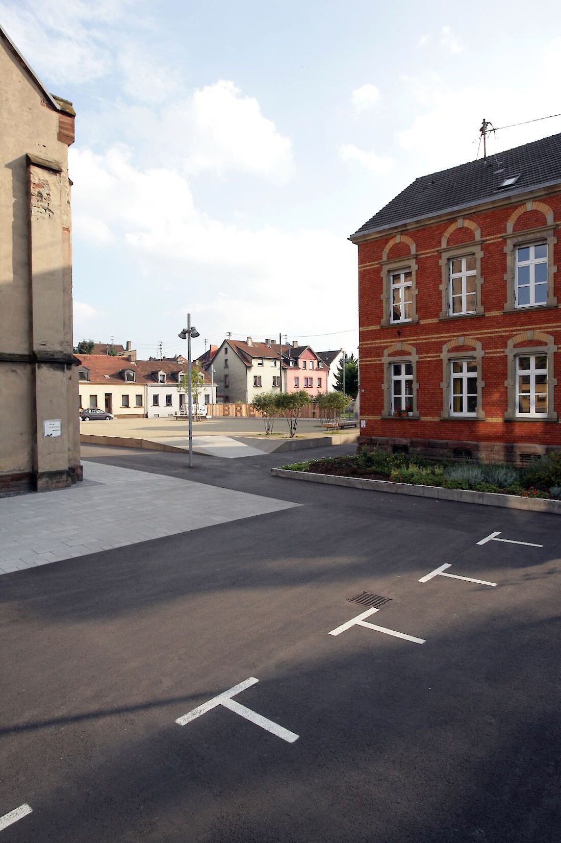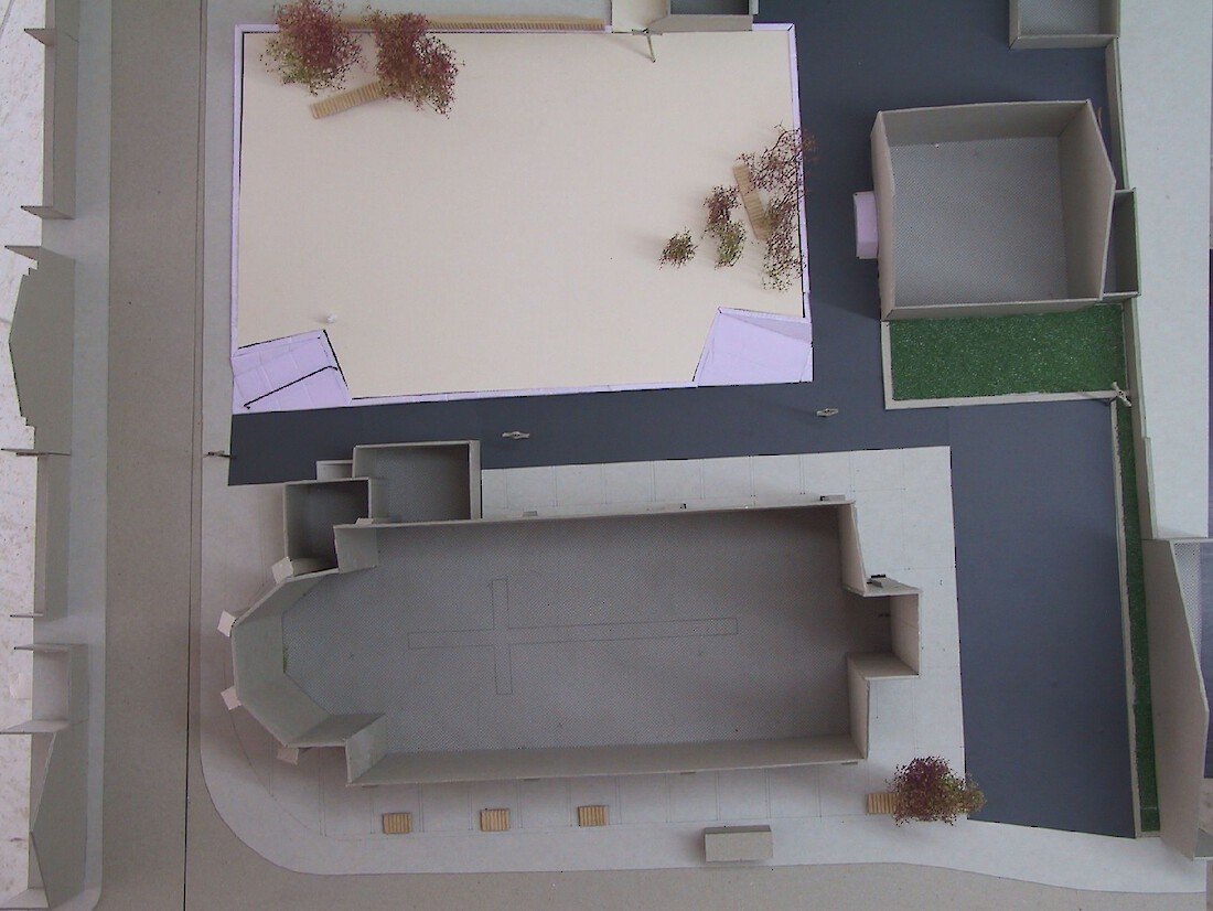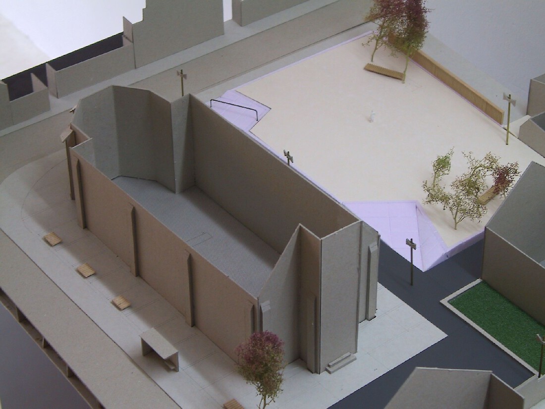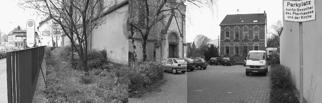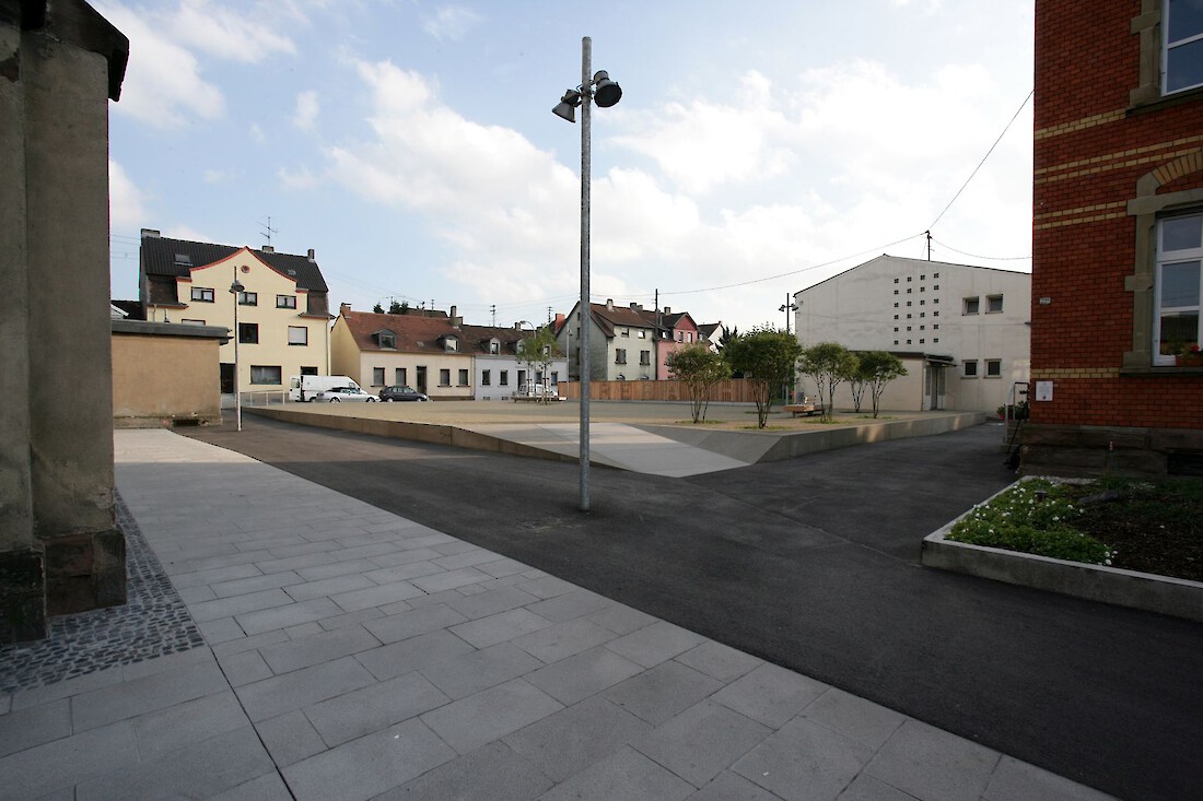 In Brebach einem Stadtteil von Saarbrücken wurde im Rahmen des Projektes "soziale Stadt" das Umfeld der Kirche neugestaltet und auf dem Gelände des ehemaligen, nicht mehr genutzten Pfarrgartens ein neuer Quatiersplatz geschaffen. Dies ist für Brebach von besonderer Bedeutung, da es bislang keinen öffentlichen Platz im Ort gab. Günstige Vorraussetzung bietet die Lage im Schnittpunkt wichtiger Straßen und öffentlicher Einrichtungen, nämlich zwischen Kindergarten, der katholischen Kirche, Pfarrheim und Pfarrhaus. Das Areal ist zur Kirchstraße hin geöffnet und bindet direkt an die Saarbrücker Straße an. Der Entwurf gliedert die Gesamtfläche in drei, in ihrer Funktion unterschiedlichen Bereiche: der Bereich unmittelbar um die Kirche, der Raum zwischen Kircheneingang und Pfarrhaus, der sogenannte kleine Kirchplatz, der als Parklatz genutzt wird und der große Kirchplatz zwischen Kirche und Kindergarten/ Gemeindesaal, der ca. 20-40 cm erhöht als Quatiers- und Festplatz dient.