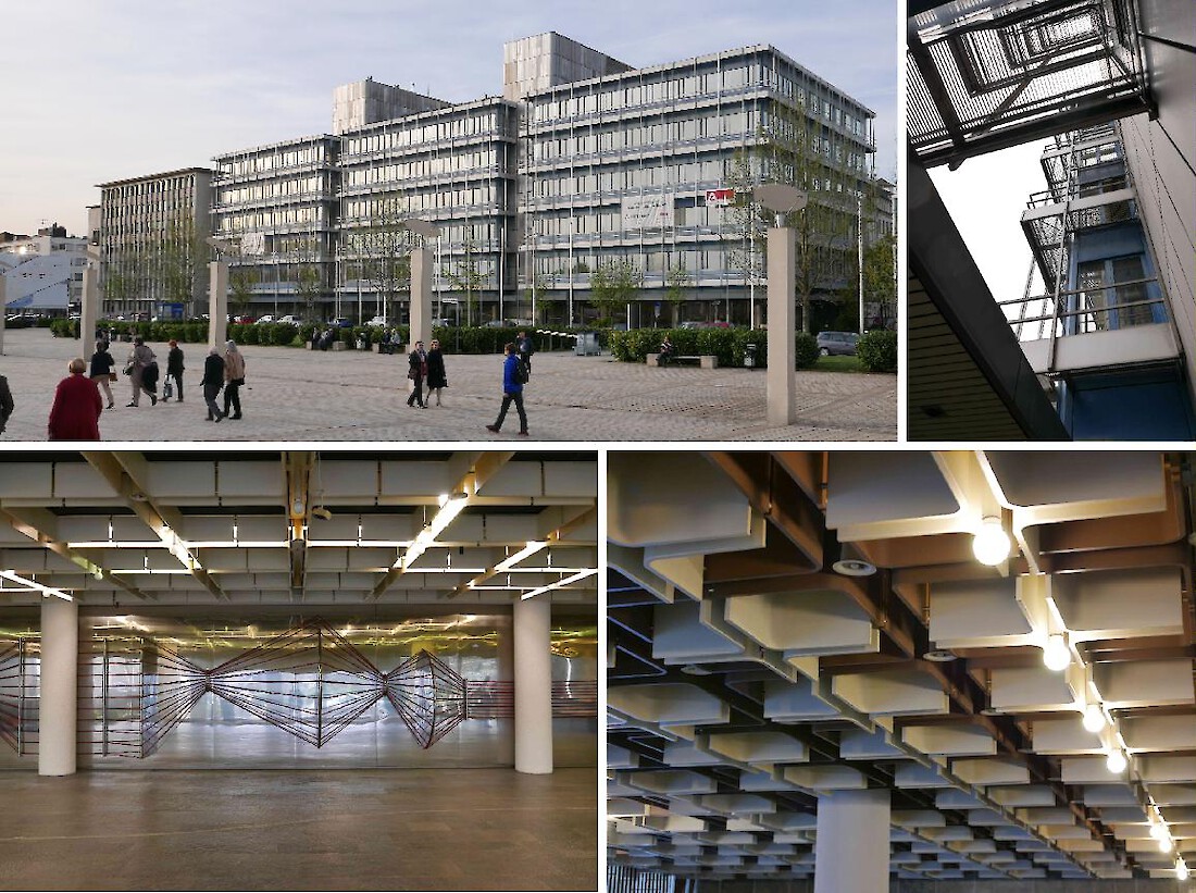 Auch repräsentieren Architektur und Konstruktion des Gebäudes den damaligen Erfordernissen eines Großkonzerns. Der 6-geschossige, im Volksmund „Blauer Bock“ genannte Gebäudekomplex gliedert sich in 3 gleich große Büroblöcke, je mit einer Grundrissabmessung von 26,40 x 26,40 m, verbunden durch 2 Zwischentürme für Erschließungs- und Serviceräume. Die 15 Großraumbüros umfassen insgesamt 11.000 qm Bürofläche. Im Erdgeschoss untergebracht sind ein zentrales Rechenzentrum und das Betriebsrestaurant. Das dem Gebäude zugrunde gelegte Entwurfsraster von 1,20 m zieht sich konsequent durch alle Ausbau- und Fassadenelemente - typisch für die stringente und technoide Entwurfshaltung der 1970er Jahren.