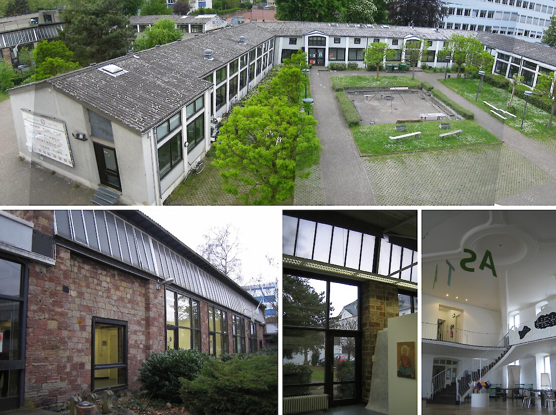 „Hier zeigt sich nun freundlich vereint Quaderwerk, Betongerippe und aufgefrischtes Barock” kommentierte 1956 die Bauwelt in der Ausgabe 52 die Architektur der neu entstandenen Staatlichen Schule für Kunst und Handwerk, der Vorgängerinstitution der heutigen HbK. Urheber des Wiederaufbaus und Ausbaus des ehemaligen Waisenhauses ist der damalige Leiter der Abteilung für Architektur und Raumgestaltung, Hans P. Koellmann (1908 - 1992). Er versah den von F.-J. Stengel 1765-69 erbauten und im Krieg ausgebrannten Barockbau mit einem modernen Betonausbau. Dahinter gestaltete er die Ateliers in einer dreiflügeligen Anlage im Pavillonstil. Koellmann, der schon 1957 als Leiter zur Dortmunder Werkkunstschule wechselte, hinterlies im Saarland nur wenige Bauten, darunter die Einrichtung des Kindergartens in Mettlach-Weiten und sein Saarbrücker Wohnhaus in der Reppersbergstrasse.