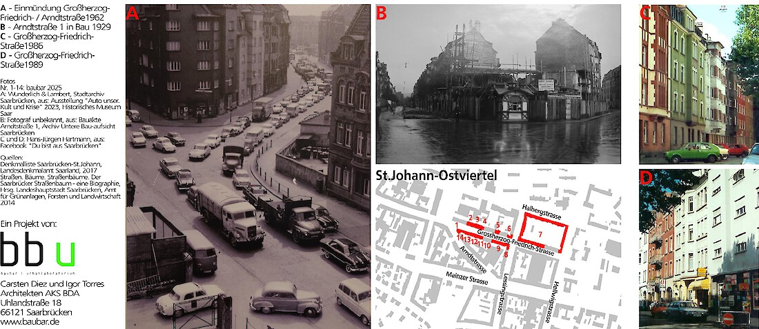 Architektonisch und städtebaulich gehört der Straßenabschnitt der Saarbrücker Großherzog-Friedrich-Straße zwischen Arndtstraße und Hellwigstraße zu den interessantesten der Stadt, da in dem relativ kurzen Stück verschiedene Stilepochen vereint sind: der Historismus aus der Zeit vor dem Ersten Weltkrieg und die Sachlichkeit der Zwischenkriegszeit.