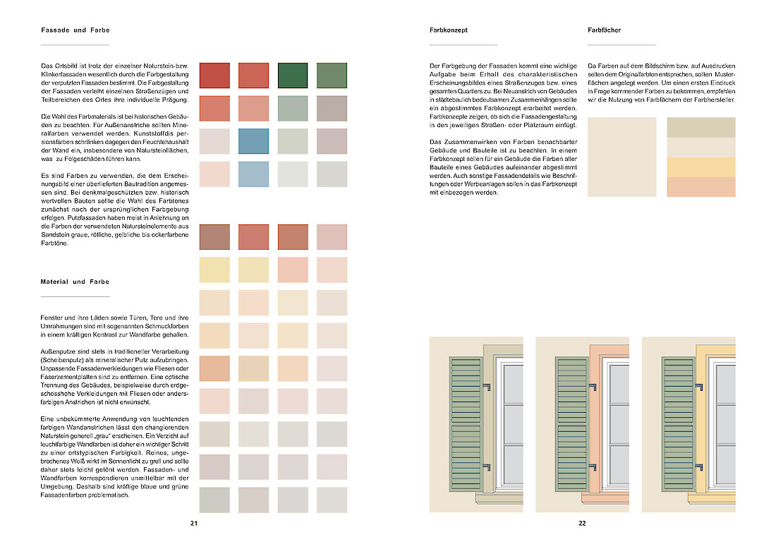 Hier soll das historische Ortsbild als wertvolles Zeugnis der Vergangenheit für die künftigen Generationen erkannt, erhalten und gepflegt werden. Die Gestaltung darf jedoch nicht isoliert stehen. Sie ist Teil des Gesamtkonzepts, das die Funktionsfähigkeit der Gemeinde weiter entwickeln soll unter Beibehaltung der historischen Merkmale. Der Leitfaden ist kein starres Korsett, sondern es müssen bei jeder baulichen Entwicklung Funktionsfähigkeit und Gestaltung abgewogen und in Einklang gebracht werden. Ziel soll sein, die gewachsene Gestalt des Ortes für die Zukunft zu erhalten, die unverwechselbare Eigenart zu pflegen und die gestalterische und städtebauliche Entwicklung der Gemeinde festzuschreiben. Das historisch, künstlerisch oder städtebaulich Wertvolle soll erhalten und der Freiraum für Erneuerungen umgrenzt werden. Der Gestaltungsleitfaden soll weitere Entwicklungen nicht behindern, sondern einen Rahmen vorgeben, der sich aus dem Gemeinwohl-Interesse ableitet.
