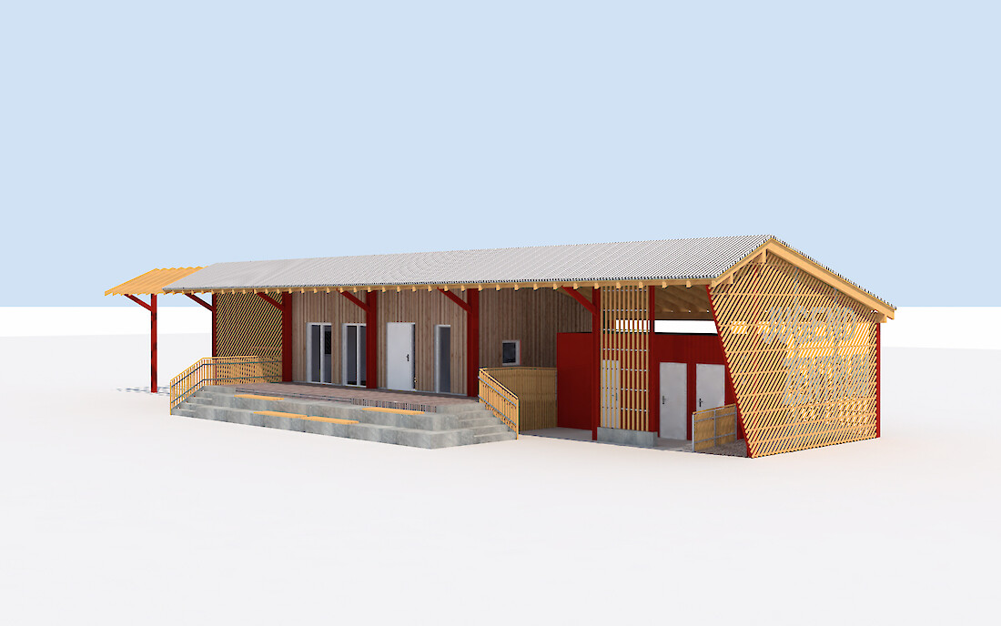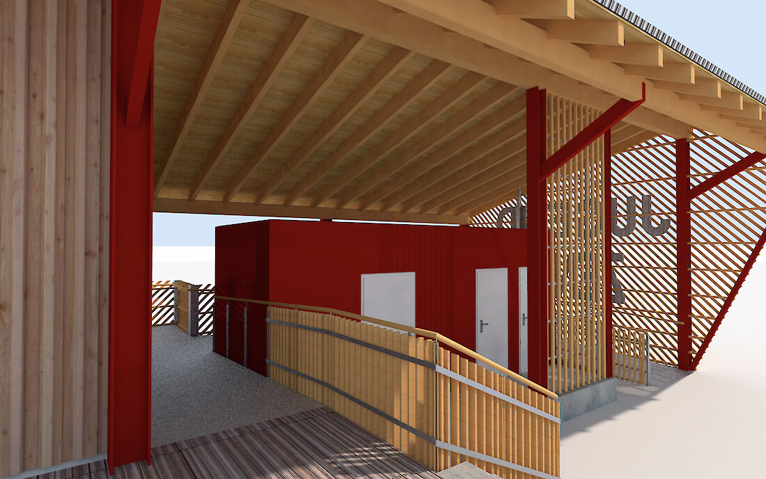 Das direkt neben der Sporthalle Langdell liegende ehemalige Tennisheim wird zu einem Jugendtreff mit WC-Anlage umgebaut und erweitert sowie barrierefrei erschlossen. Das bestehende Gebäude wird in die neue Dach- und Fassadenstruktur in Holzbauweise integriert, der Vorplatz zu einem Treffpunkt und Begegnungsort ausgestaltet.