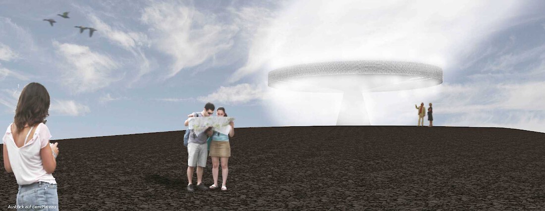 Aus dem breiten und flachen Tal der Saar herkommend erhebt sich, einem Tafelberg gleich, die Halde Duhamel. Über ihrem Gipfel scheint eine glitzernde Wolke für einen Moment stillzustehen. Doch diese Wolke ist ebenso künstlich, wie der Berg, über dem sie schwebt. So selbstverständlich uns Landschaften als Naturräume erscheinen, so sehr sind sie Konstrukte sowohl unserer Wahrnehmung als auch unserer kulturellen Entwicklung. Im Saarland hat die Kohle- und Stahlindustrie die Landschaft nachhaltig verändert und geformt. Im gleichen Maße wie die darin befindlichen Bauwerke, ist das Landschaftsbild Teil des kollektiven Gedächtnisses, untrennbar mit dem Begriff und der Erfahrung von Heimat verknüpft. So legen die Haldenberge topografisch Zeugnis ab von der 250 jährigen Geschichte des Bergbaus an der Saar und von industriellen Prozessen, in denen es entscheidend um Energie und Transformation geht. Das Material dieser Halden, Schiefer, Ton und Sandsteine, entstammt dem Erdinnern, der Tiefe. Es ist das Gegenbild der Grabung nach den Schätzen und Energien die diese birgt.