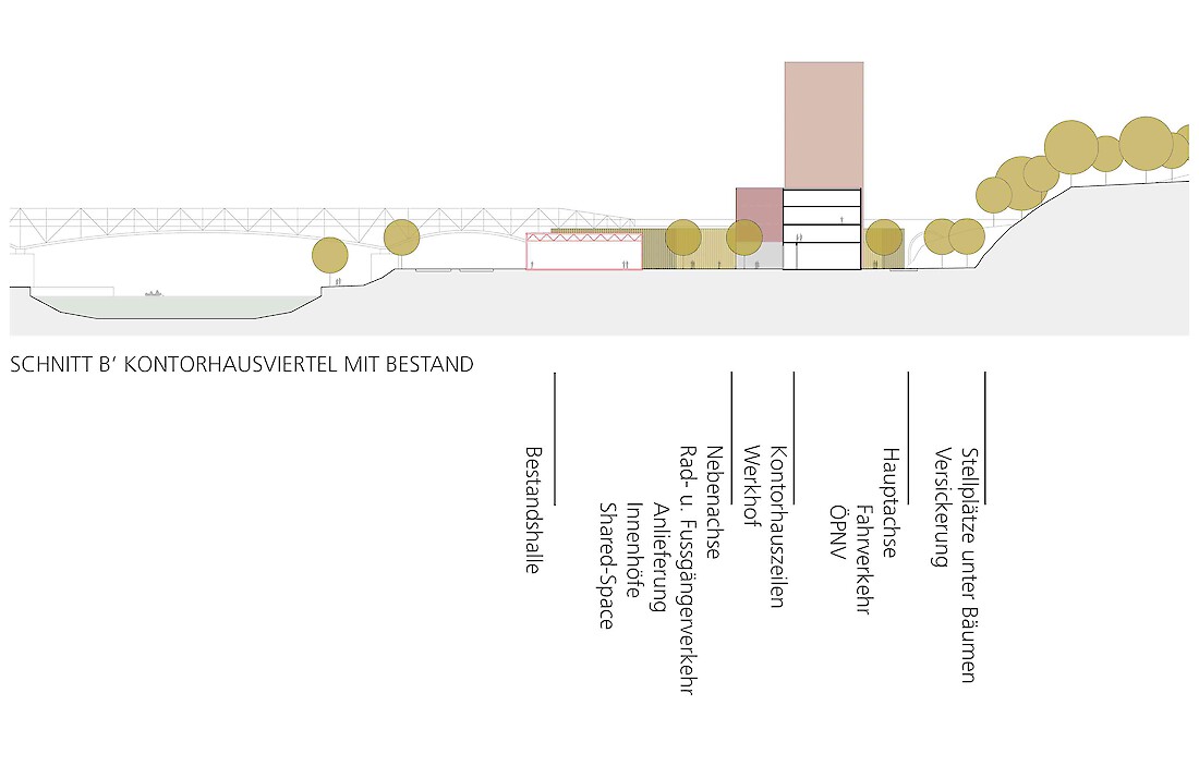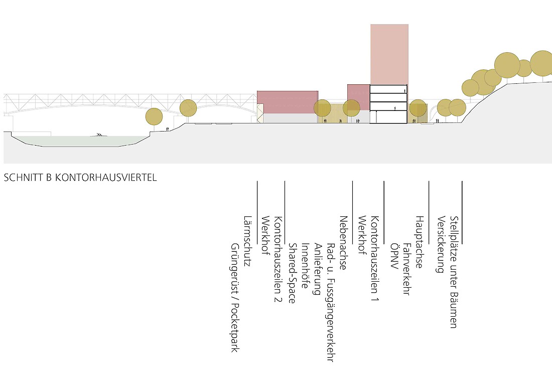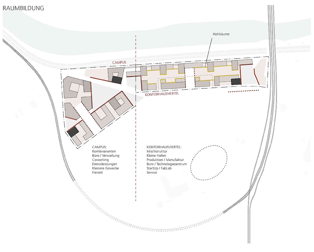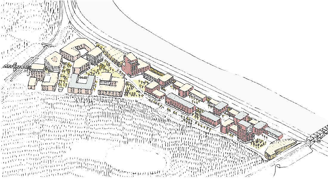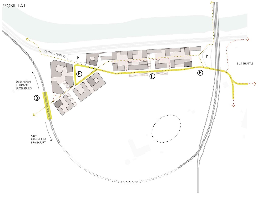 Die Besonderheit des ehemaligen Messeareals am Schanzenberg ist die Isoliertheit vom restlichen Stadtkörper, die von den künstlichen und natürlichen Barrieren wie Bahndamm, Autobahn und Topographie herrührt. Obwohl äusserst prominent gelegen - am westlichen Einfallstor der Stadt - ist sie eine Insel im Gefüge der Stadt. Erste Aufgabe einer städtebaulichen Lösung für das Areal muss es sein, dass neue Quartier in den Stadtkörper zu integrieren, mit den benachbarten Gebieten zu vernetzen, aber vor allem es für die Gesamtstadt sichtbar zu machen. Auf dem Schanzenbergareal soll eine urbane Überbauung von hoher Dichte und guter Qualität entstehen. Bemessen an der verfügbaren Grundfläche fordert das Programm in der Tat eine urbane Dichte. Zudem ist die Bebauung auf ein schmales Band beschränkt und nur durch das Nadelöhr eines kurzen Tunnels erreichbar. Also gilt es, aus dem Thema der Insellage heraus ein Quartier mit einer hohen eigenständigen Qualität zu entwickeln.